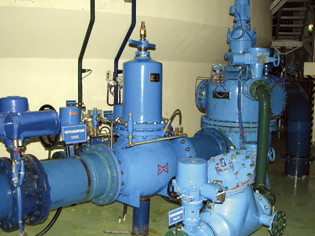 4、流量與減壓閥過流面積:電磁流量計顯示為1100m3/h,此時主閥過流面積為17357mm2(大過流面積53092mm2),只占大過流面積的32%,還有充分的的過流量。計算出過流孔流速為17.6m/s。與我們的分析數(shù)據(jù)相關不大。至2008年10月止,紫坪鋪電站全部機組的技術供水系統(tǒng)全部改造完畢。